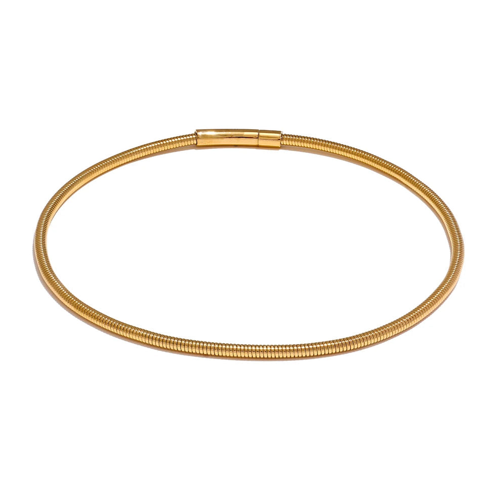 Elevate your look with timeless elegance. This 14K gold-plated choker measures 16.33 inches, designed to sit gracefully along the neckline for a sleek and modern fit. Its minimal yet luxurious design makes it perfect for both everyday wear and special occasions. Crafted with a high-quality finish for lasting shine, this lightweight piece can be worn solo for a bold statement or layered effortlessly with other necklaces for a chic, personalized style.
